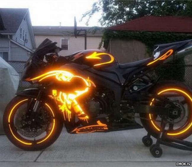 Tank/ Verkleidungsteile matt schwarz, Rahmen glänzend schwarz, LED RL schwarz, Halogen Blinker, HI-Q Top Grip Alu Fußrasten schwarz, Polisport Halo LED Maske, IXIL Competition Range ESD, weisse Felgenrandaufkleber, Balu Racing Bugspoiler, Progressive Gabelfedern, Koso db01r, Lenkerenden schwarz, Edelstahl Kettenschutz schwarz, schwarze Brems-/ Kupplungshebel, Stahlflex Lucas vorn, YSS Federbein, Sturzpads GSG, Universal Kennzeichenhalter