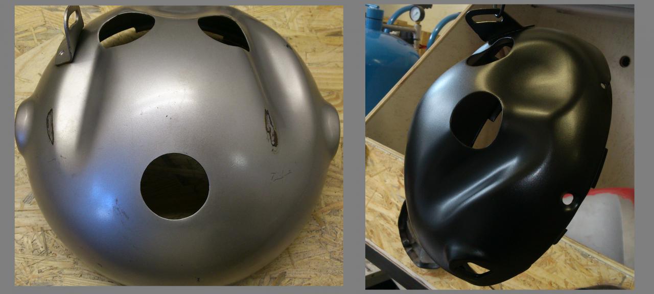 Und zum Thema entlacken. Entweder Bohrmaschine mit Drahtbürstenaufsatz oder Abbeitzer oder gibt ja auch sone kleine Maschine, sieht aus wie nen Trennschleifer, nur dass der Aufsatz nicht rotiert sondern vibriert. Da gibts Sandpapieraufsätze, mit denen funktioniert das auch Top. Ich habe auch lackierte Werkstücke auch schon einfach übergepulvert. Hat auch funktioniert (Natürlich nicht bei Kunden) :P