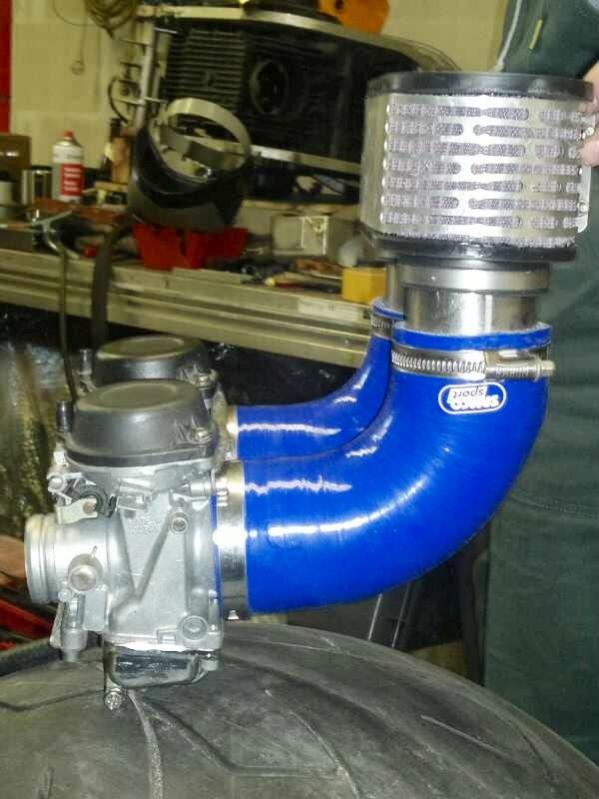 Weitere Bilder vom modifiziertem Vergaser/Luftfiltersystem kommen gleich.
