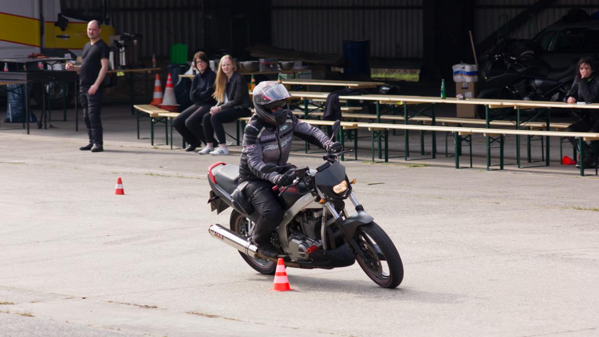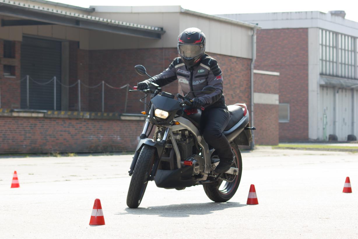 Am Anfang würde erstmal geguckt wie vertraut wir mit unseren Motorrädern sind. Heißt im stehen fahren, einhändig usw.