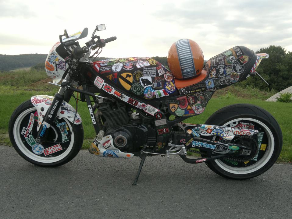 2012 - 2014: '91 Suzuki GS500E VVK Eliptic 2014 - 2016: '98 Kawasaki ZX-7R 2016: '04 Kawasaki ZX-10R 2017 - ... : '03 Aprilia RSV 1000 Tuono +' 92 Suzuki GS500E VVK Wagner |
