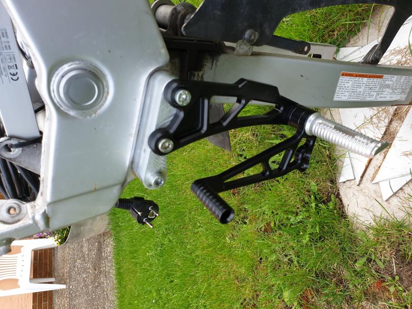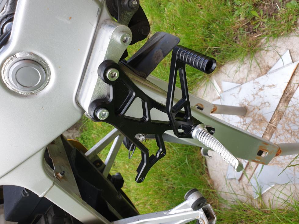 So heute mal wieder etwas die Stehlampe modifiziert mit ValterMoto Rastenanlage und passenden Adaptern. Die Adapter haben den Vorteil, dass man durch umdrehen sportlich oder Komfort fahren kann. Es wird langsam, denn der leere Motor liegt noch hier und auch noch ne Auspuffanlage modifiziert.