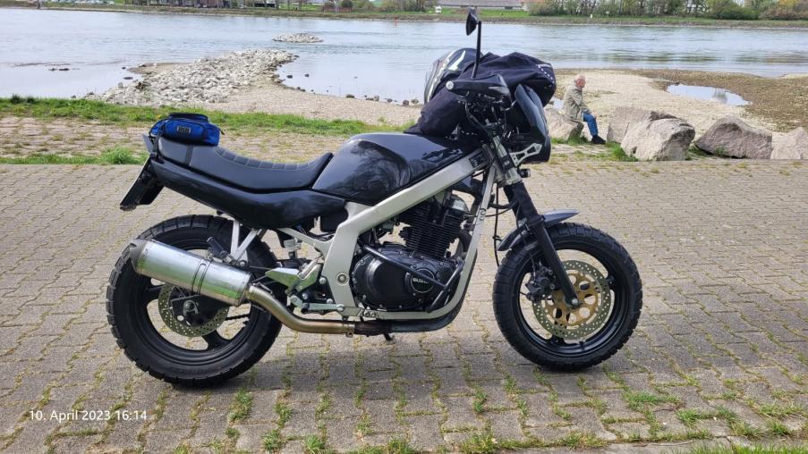 Bei meiner Pflegebandit das Ventilspiel gecheckt und einen Ölwechsel gemacht, dann alles wieder zusammengebaut, drübergeputzt, Reifendruck auf Soll gebracht... jetzt wäre sie tendentiell bereit, morgen auszuziehen...