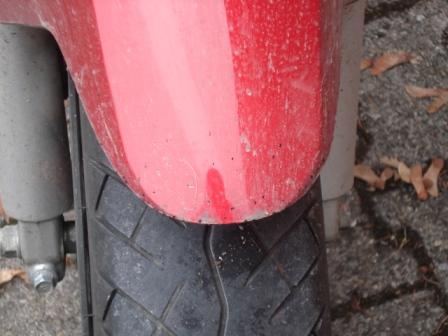 auf dem letzten bild sieht man das das öl an der vorderseite der gabel ist. daher müsst das schon mit ziemlichem druck rausgespritzt sein um dahin zukommen, vor allem gegen der fahrtwind