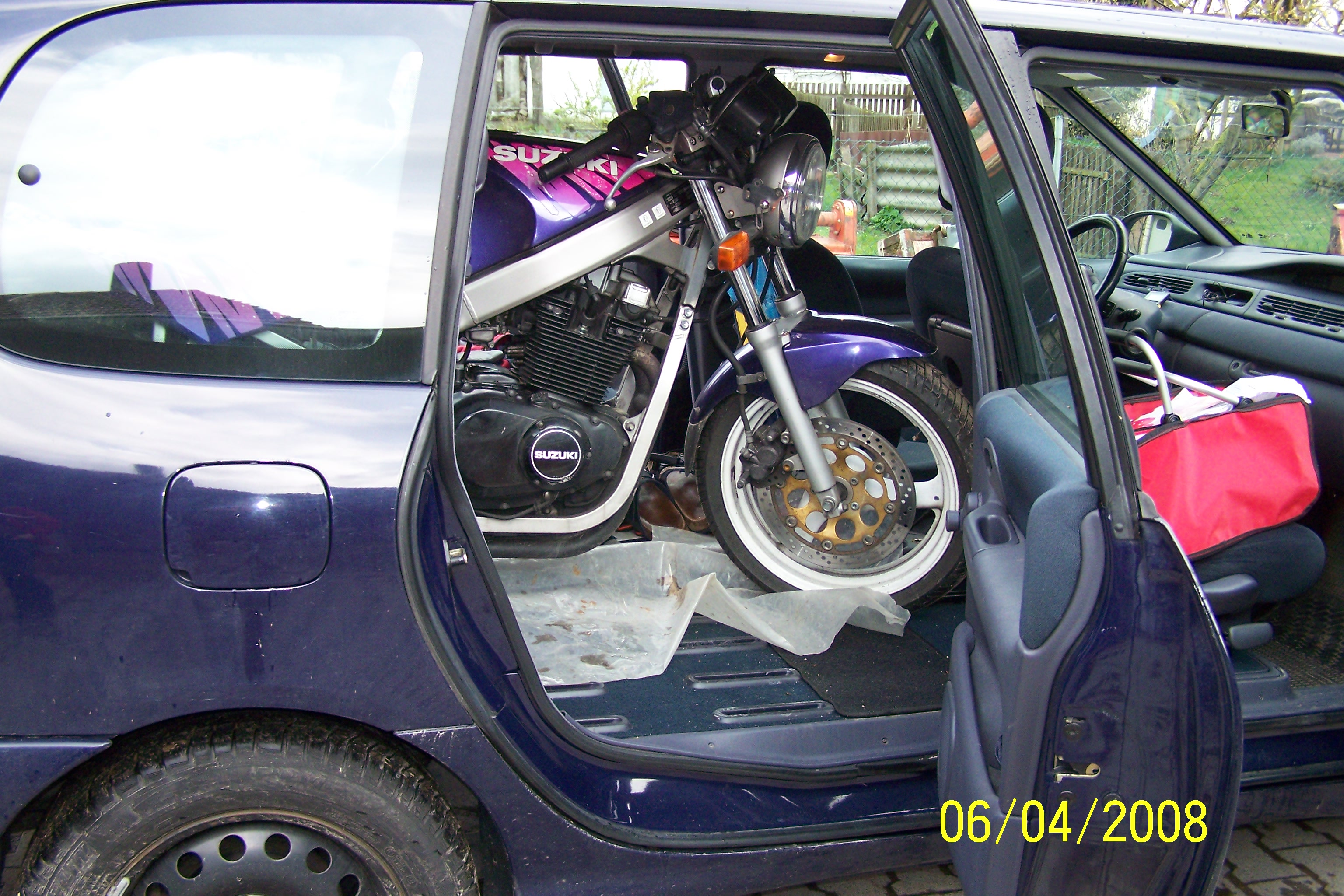 also wir brauchten nur zwei von den hinteren sitzen ausbauen. und rad und lenker war noch am möp dran. hatten auch noch den ganz alten espace, also wohl die kürzere version.