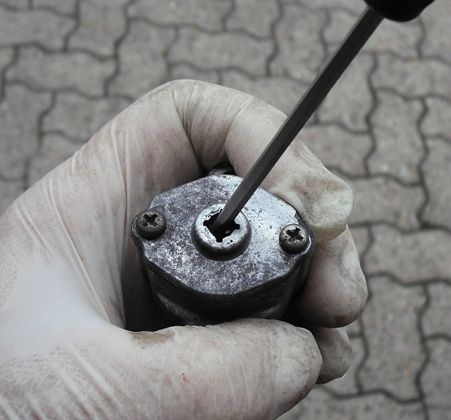 Dort wo auf dem Bild ein Kreuzschlitz ist ,ist bei mir nur einen Abdeckung. Ich habe die beiden kleinen Schrauben gelöst und die darunterliegende Schlitzschraube (wo ein Bandfederstahl befestigt ist) im Uhrzeigersinn festgedreht. Grüße PS: Cremilingen |