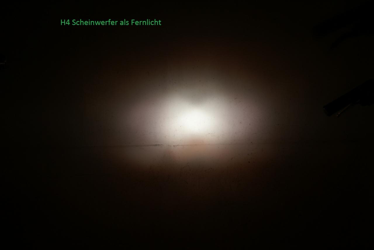 Das Problem dabei ist, dass der H7 Scheinwerfer in die Kategorie "Flutlicht" fällt... Wie gesagt, den hab ich jetzt als Fernlicht... und so scheint er auch absolut gebaut zu sein... der Reflektiert das Licht einfach nach vorne... und genau das macht der H4 auch, wenn er als Fernlicht beschalten ist... Schalte ich den H4 auf Abblendlicht, bekomm ich das gewohnte Bild, wo ich den Lichtkegel auf der rechten Seite länger hab, als auf der linken...