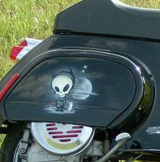 - Airbrusharbeiten an Helm und Tank mit meinen alten Vespa Maskottchen: