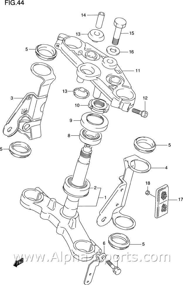 Die vorderen Blinker sind an extra Halterungen an den Gabelholmen angebracht. Das sieht so aus: Die Teile 3 und 4 und die Gummidämpfer 5.