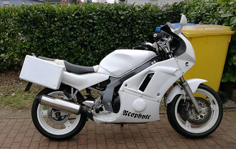 GM51B, EZ 1993, über 100.000km (oder auch 100Mm), in meinem Besitz seit über 10 Jahren und über 75.000km Änderungen/Umbauten: - Vollverkleidung Fivestar Superbike, Verkleidungsscheibe MRA schwarz - Gabel und Bremse vorn B4 - LSL Superbikelenker - gedrehte Edelstahl-Lenkerenden - Federbein von YSS - vorne PiPo 2ct 110/70R17 auf 3"-Felge (B4) - hinten PiPo 2ct 150/60R17 auf 4,5"-Felge (SV650) - Edelstahlkrümmer an Serienauspuff - Stahlflex vorn von Melvin in weiß - Tank neues Modell mit umgearbeitetem Tankstutzen - Sitzbankbezug neu genäht - Schloßsatz neu OHNE Parklicht - LED-Rücklicht originale Form in schwarz - LED-Blinker in die Koffer integriert (mit Umbau der Kontrollleuchte) - verkehrsweiß mit Schriftzug "neophyte" als einzige Aufkleber - Lenker weiß getapt, Spiegel mit Sprayfolie weiß beschichtet - Köfferchen fest angebaut (für Verpflegung zur Ausfahrt) - Tankring für Quicklock Evo Tankrucksack (quasi das Handschuhfach) - Kennzeichenhalter aus Metall Geändert von Kay73 (26.12.2016 um 11:10:48 Uhr) |