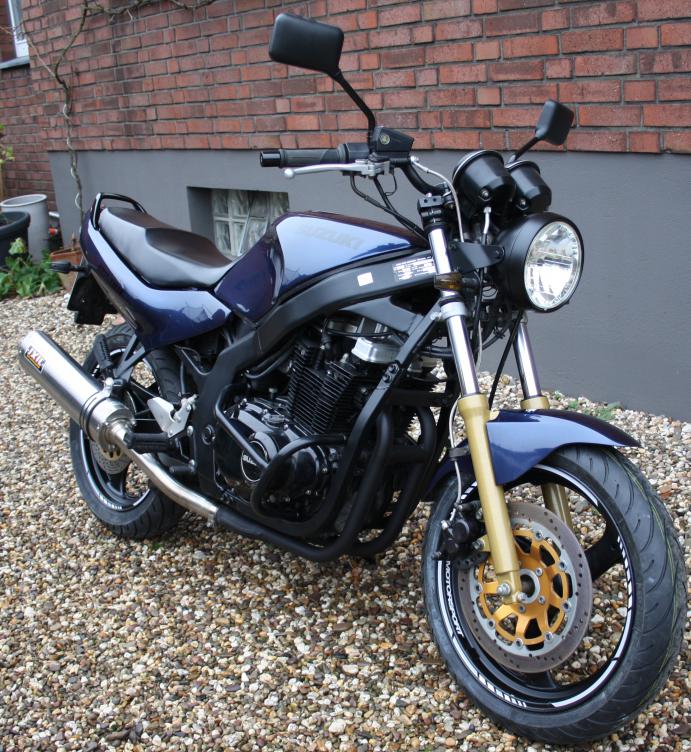 GS 500 EU, EZ 95, Km 60k+ Was ich alles gemacht habe: - Lackiert wurden Rahmen, Krümmer, Felgen und Gabel. - Ganz Große Inspektion - Hauptscheinwerfer aus Klarglas mit Direktversorgung von de Batterie. - Lenker gewechselt - Stahlflex vorne und hinten. - Kraftstoffleitungen erneuert. - SKS erneuert - Spritzschutz, hinten, überarbeitet. - Neue Spiegel. - uvm.