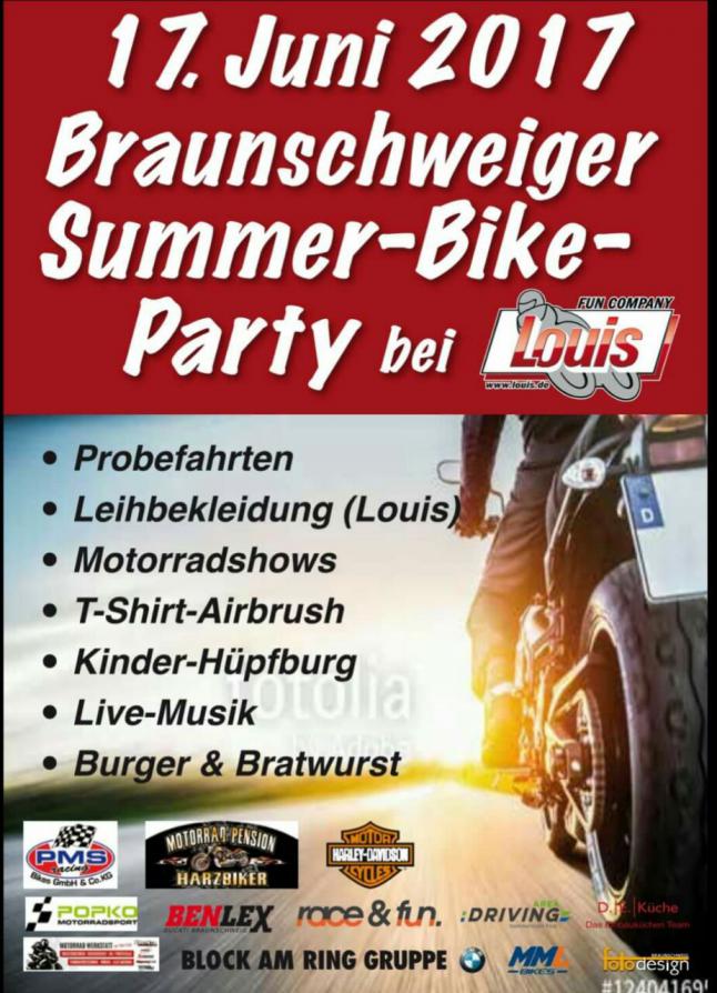 Es wird eine Mega-Veranstalltung mit vielen Austellern und Attraktionen für Groß und Klein. Hier mal eine kleine Auflistung: BenLex Motorrad GmbH Ducati Harley Davidson Braunschweig Popko Motorradsport GmbH Kawasaki/Kymco PMS Bikes GmbH&Co.Kg Honda MML-Bikes Suzuki/Peugot/KTM Block am Ring BMW Motorrad Scheibner & Olk Yamaha/Triumph Zehn Zoll Motorradroller Vespa 50/50 Tattoo Parlor D.E. Küche Fotodesign Braunschweig Hamerstein Prak Driving Area Tom-Tech Kartsport Spezi Metzger Nolan Helme Louis Show Truck Stunt Show Ducati Show Truck S100 DR. Wack Live Musik Wera Werkzeug Pulled Pork Burger Hüpfeburg für den Nachwuchsbiker Poketbikes Es ist an diesem Tag möglich verschiedene Motorräder auch Probezufahren. Parkmöglichkeiten werden ausgewiesen. |