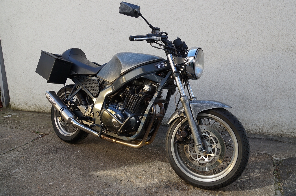 Umbauten : - RGV 250 USD Gabel mit progressiven Federn - 160er Hinterreifen von der 600er Bandit - neu bezogene Sitzbank - Bugspoiler von Balu Racing - neuer Kennzeichenhalter - LED Hauptscheinwerfer - vorne LED Blinker mit Standlicht - hinten 3 in 1 LED Blinker - Ölkühler nachgerüstet (Danke nochmal an JimKnopf) - Adaptives Bremslicht - Takkoni Sportauspuff - Rahmen komplett schwarz pulverbeschichtet - Lenkerendenspiegel - eine Menge Kleinkram |