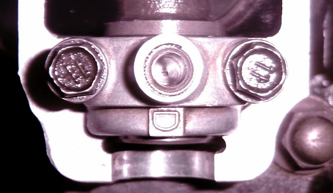 hier mal das Corpus Delicti in eingebautem Zustand: ...wobei nur der untere Teil des Loches durchgeht bis in den Kanal — die obere Hälfte ist unter der Lauffläche, also nicht durch, aber doch eingesenkt.Anhang 8658 Beim Einbau hatte ich das Glück, das sich die verdrückte Stelle genau am Ausschnitt der Nockenwelle befand, der für die Ausrichtung der Wellen gegeneinander verwand wird. Das gab mir die Möglichkeit