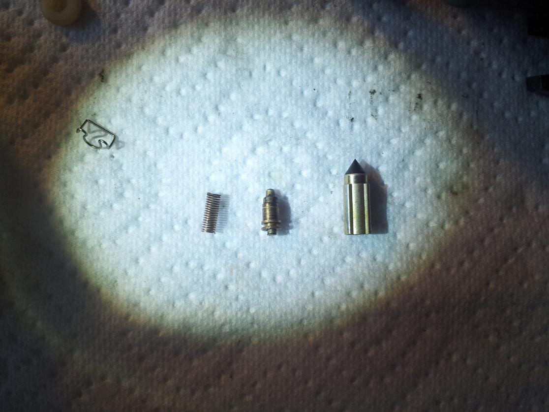 Zum Einen war bei mir das eine Schwimmernadelventil nicht mehr funktionsfähig, da sich der kleine Stift, der sich im Ventil ein klein wenig hoch und runter bewegt, festgegammelt war und daher das Ventil von den Schwimmern unbeeinflusst dauerhaft zu war. Abhilfe schaffte hier, das kleine Schwimmernadelventil zu zerlegen und zu reinigen; besteht auch nur aus dem "Gehäuse" mit der Spitze unten, einer kleinen Feder, dem "Schaft" und dem Stift (der sich im Schaft hoch und runter bewegt). Anbei ein Bild von den Teilen, wobei das Teil in der Mitte der Schaft mit dem Stift ist. Zum Reinigen einfach den Stift ausdrücken (kann gut schwergängig sein), nach der Reinigung muss der sich wieder ganz leicht im Schaft bewegen können. Anhang 16838 Die andere Sache die mir aufgefallen ist, war der Vergaserdeckel, da ist bei mir wohl durch das Ultraschallbad der Stift wo die Feder draufsitzt ein wenig zerbröselt; ich habs jetzt zwar zusammengebaut und es funktioniert auch, aber kann ich das wirklich so drinlassen oder wär nen neuer Deckel angebrachter? Hab davon auch mal ein Bild: Anhang 16839 Alternativ kann ich da auch nen Plastikröhrchen draufstecken/kleben, die Membran dürfte davon ja nicht behindert werden... |