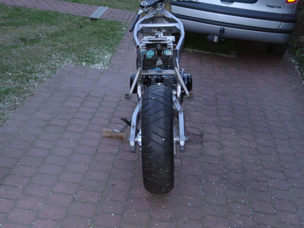 Musste eine neue Distanz beim Dreher in Auftrag geben und n neues LKL bestellen, weil ich mich vermessen hab :roll: Tja, das ist das gute alte Lehrgeld :cry: Hab heut Nacht bis halb 4 dran rumgeschraubt und das ist erstmal dabei herausgekommen: Felge vorn ist noch nicht die Endgültige (die lässt immernoch auf sich warten :evil: ) Ne andre Schwinge hab ich auch schon im Kopf, mal sehn ob die passt...aber damit ich den Rahmen mit Gabel nicht immer schleppen muss, hab ich erstmal ne RF600 Schwinge appliziert : Anhang 9049Anhang 9050Anhang 9051Anhang 9052Anhang 9053 Da ich mich über Ostern und die Woche drauf erstmal um Unikram kümmern muss, wirds wohl bis zum näxten Update n Stück dauern :cry: Aber vielleicht hab ich bis dahin die schicken Teile alle zusammen :D Da fällt mir ein: darf man eigentlich keine Heckverkleidung haben? Nur die Sitzbank und den Soziusgriff dran und fertig? fänd ich irgendwie nett 8) |
