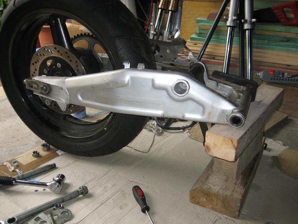 Anhang 9054Anhang 9055 Wer weiß, wann man mal unbedingt ein RIESEN Loch in irgendwas bohren muss :roll: Hier die 3,0*17" Brembofelge, die verbaut wird: Anhang 9056 Endlich kam nach langem Warten das Teil, welches vermutlich meine neue Schwinge wird: Anhang 9057Anhang 9058 Zur Montage gibt`s bisher noch ein paar Probleme: Zum einen ist die Schwinge vorn etliche Millimeter zu breit für den GS-Rahmen...das ist aber kein Problem, der Fräser wird`s richten. Zum andren brauche ich noch die zur Schwinge gehörige Umlenkung, Steckachse und kettenradträgerseitige Distanz (dann sollte alles passen): Anhang 9059Anhang 9060Anhang 9061 Die Teile bekomm ich hoffentlich ausm Gixxerforum oder der Bucht :roll: |