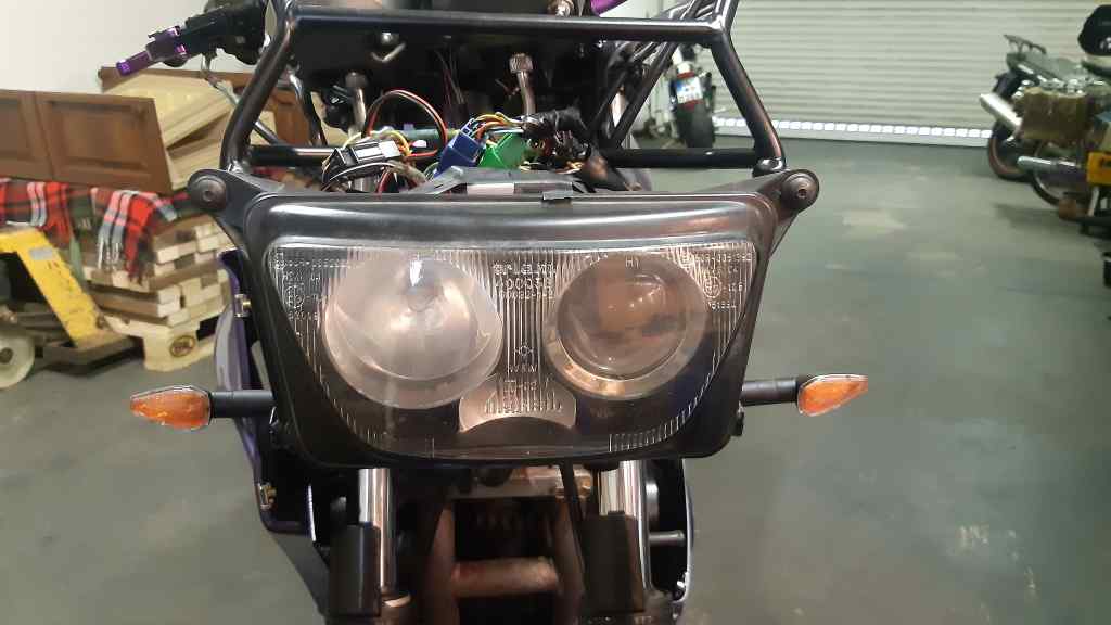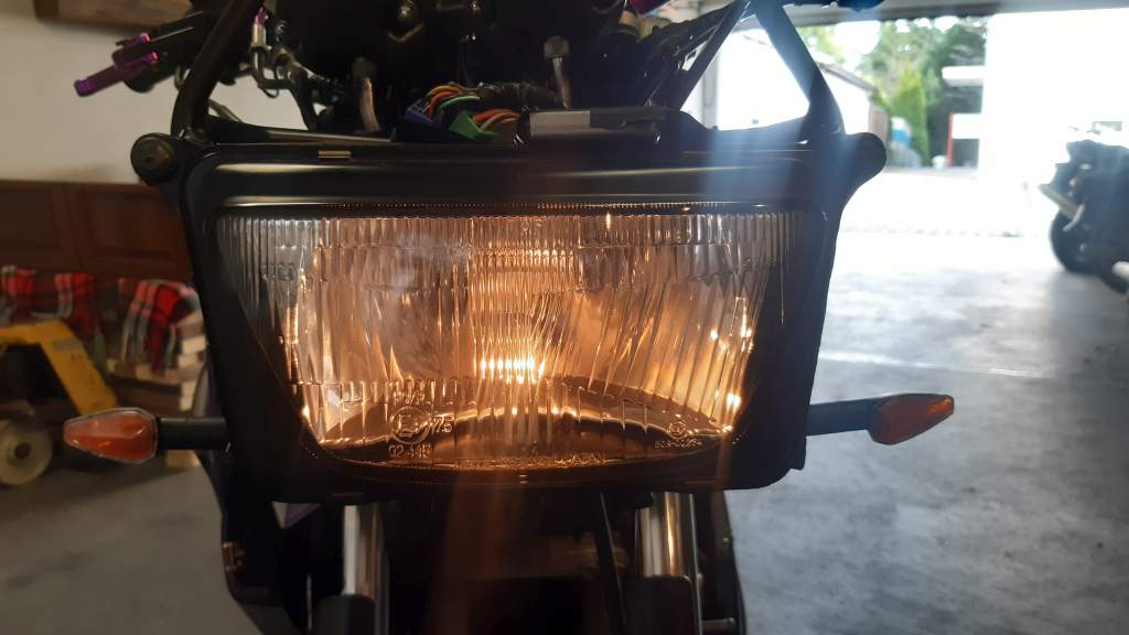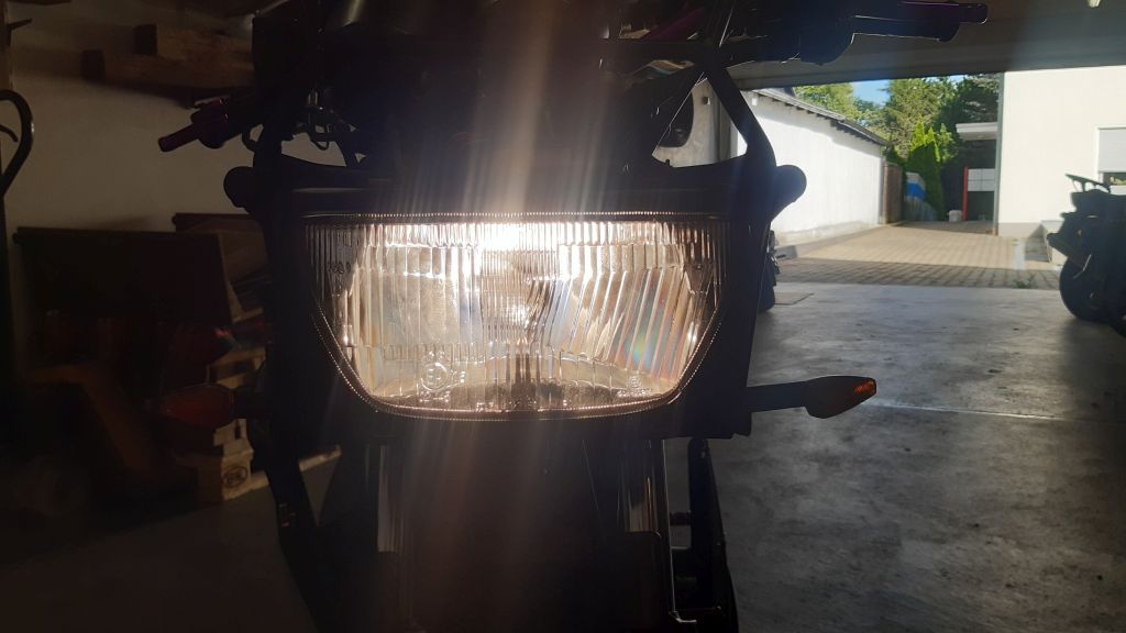 berichte mal wie es sich mit dem Scheinwerfer hat bitte. Bedenkt das der Scheinwerfer kein Standlicht integriert hat. Zumindest ist es bei der FZR-600 so. |