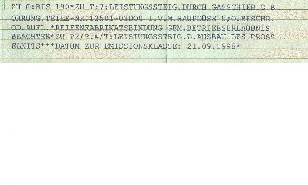 Eine Frage hab ich allerdings noch was heißt der Obere Eintrag im Fahrzeugschein? Leistungsteigerung durch was? Anhang 16275 |