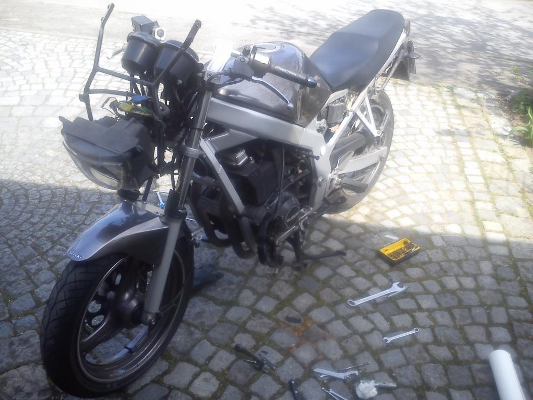 Anhang 19849 Anhang 19850 Anhang 19851 Das ist der bis dato Zustand, wie ich ihn vom 4. Vorbesitzer übernommen hab. Danke an Jim Knopf dahingehend nochmal, dass er sich das Ding angeguckt hat. BJ '93, 28tkm, Five Stars Elliptic VVK in grau, unverbastelt, entdrosselt, keine Stürze laut VB. Geplante Arbeiten: - VVK abbauen: erledigt Anhang 19852 Anhang 19853 Anhang 19854 - Den Siff der Jahrzehnte aus der Ritzelabdeckung entfernen - erledigt :grinser2: - VVK reparieren (hat größere Risse, vor allem an den Schraublöchern) mit Heißluftfön und ABS-Sticks (beides bestellt) - ausstehend - VVK selber neu lackieren - ausstehend, hab mich noch nicht ganz entschieden ob überhaupt und ich schwanke bei der Farbe zwischen grau und schwarz, evtl. weiß. Hab früher einige Kunststoffteile mit der Spraydose (Reinigen, Schleifen, Grundieren, Lack, Klarlack :-D) gemacht und mir würde die Qualität reichen. Es kann jedenfalls nur besser werden als der jetzige Zustand (vom Zustand des Lacks)! Kommentare erwünscht. - Die hässliche Carbonfolie runter, Lenker von Kleberesten reinigen - ausstehend - Vergaser ausbauen und reinigen - ausstehend, möchte ich machen, hab aber noch keine Ahnung davon - Spiegel an der Verkleidung auswechseln - ausstehend, hätte gerne kleinere und "modernere" als diese klobigen Dinger, finde aber nichts speziell für die gs 500 (passen auch Spiegel anderer Modelle so einfach drauf?) - Tank neu lackieren - ausstehend (siehe VVK lackieren) - Neue Gabelfedern - ausstehend, hab jetzt schon mehrmals mit der butterweichen Dämpfung Bekanntschaft gemacht - nicht gut! Empfehlungen erwünscht! - Ganganzeige - ausstehend, ist bereits vom Vorbesitzer drin (nicht zu Ende gebaut), da quatsche ich gerade mit AmigaHarry, ob und wie! - Mal seh'n! Welche Arbeiten fallen euch noch ein, die möglicherweise die letzten 21 Jahre vernachlässigt wurden? Danke für die Aufmerksamkeit :gutenacht: |