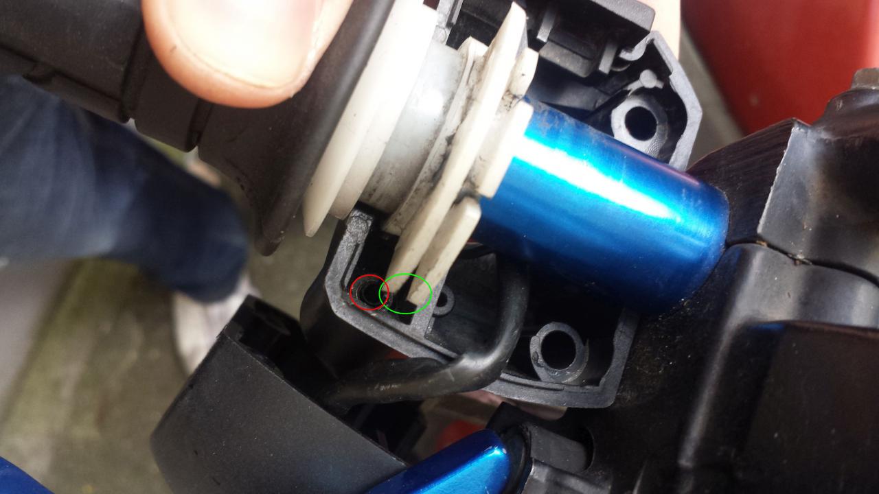 Anhang 22267 EDIT: Je nachdem wo die Nullstellung der Hülse ist (je nach Einstellung der Schraube unterm Tank) kann es auch sein, dass der Stift nicht im unteren sondern im oberen Teil des Gehäuses sitzen muss... |