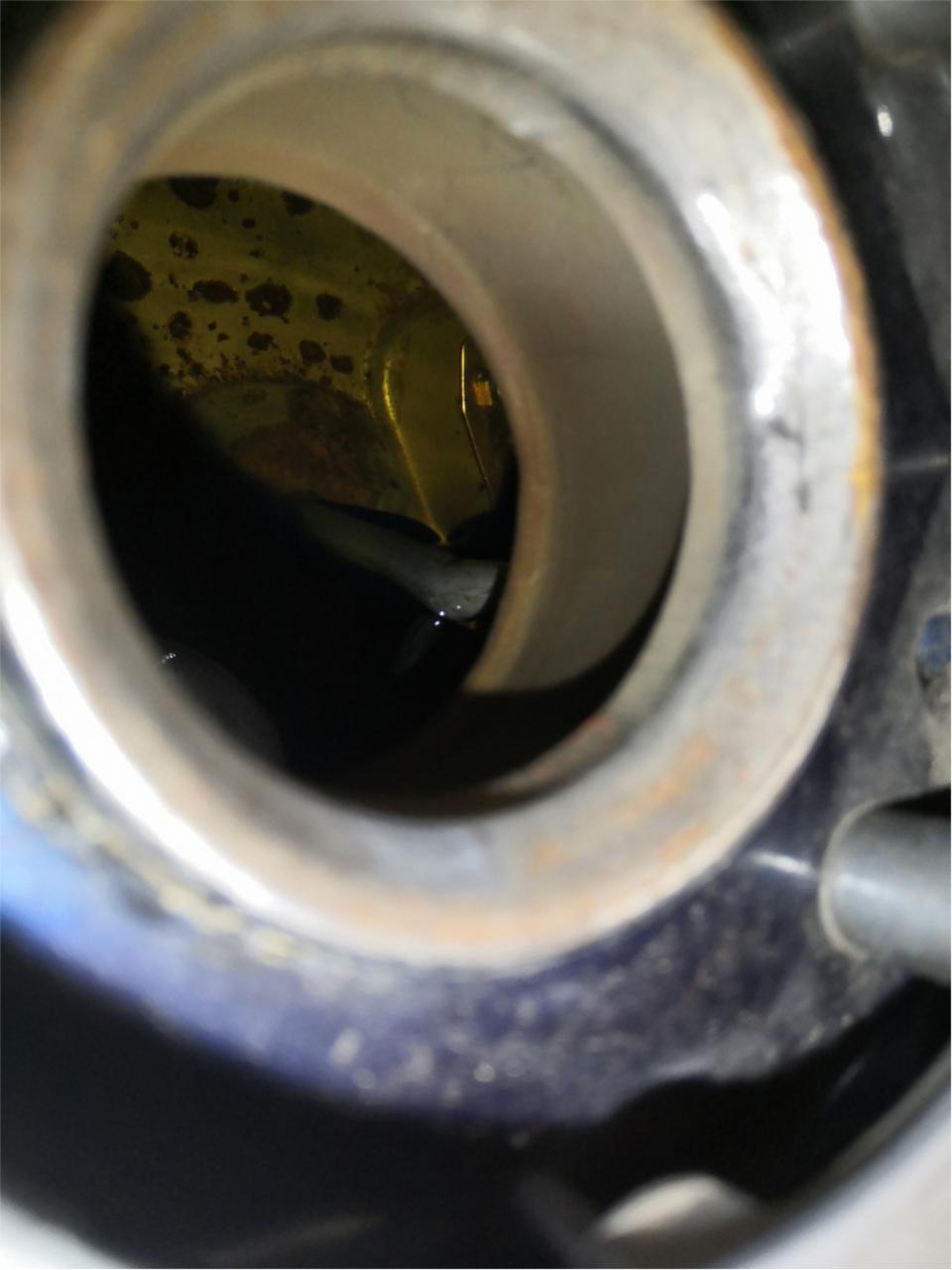 Ich glaube du hast auch Wasser im Tank. Das was nach Öl unter dem Benzin aussieht, könnte Wasser sein. Öl löst sich komplett im Benzin. Wasser ist schwerer als Benzin und beides löst sich nicht ineinander, daher setzt sich Wasser unter dem Benzin ab. Eine mögliche Ursache könnte ein zugesetzter Wasserablauf im Tank sein. Sollte man mal reinigen. Wasser und Rost im Benzin ist beides nicht förderlich für einen runden Motorlauf. Das Problem sollte man schnellstmöglich beheben. Entweder kurzfristig einen rostfreien Tank besorgen oder den vorhandenen entrosten. http://forum.gs-500.de/search.php?searchid=4770365 https://www.google.com/search?client...tank+entrosten |
