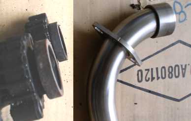 Die Krümmer sind anders gebaut. Die Verdickung an der Stelle, wo die Auspuffdichtung rankommt ist länger als bei der Originalanlage. Dadurch würde die Krümmerschraube teilweise frei liegen. Es sieht nicht so aus wie gewollt. Die Krümmerschraube würde dann wohl auch wegrosten.