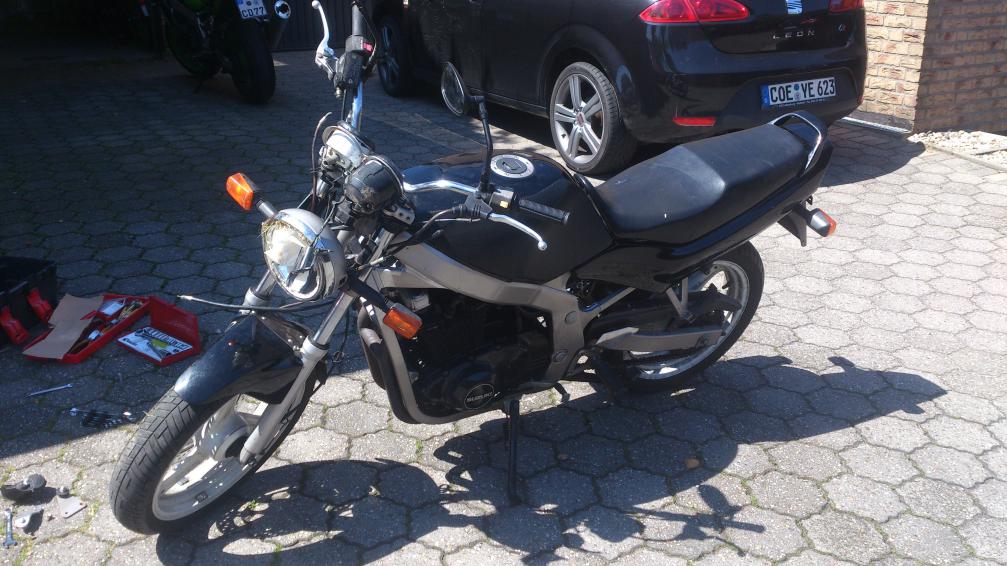 Lenker habe ich bereits wieder den Stummellenker dran. Die Fassung für den scheinwerfer ist auch wieder dran und Blinker tut auch was er soll. Tacho ist bestellt, hoffe es geht bald weiter.
