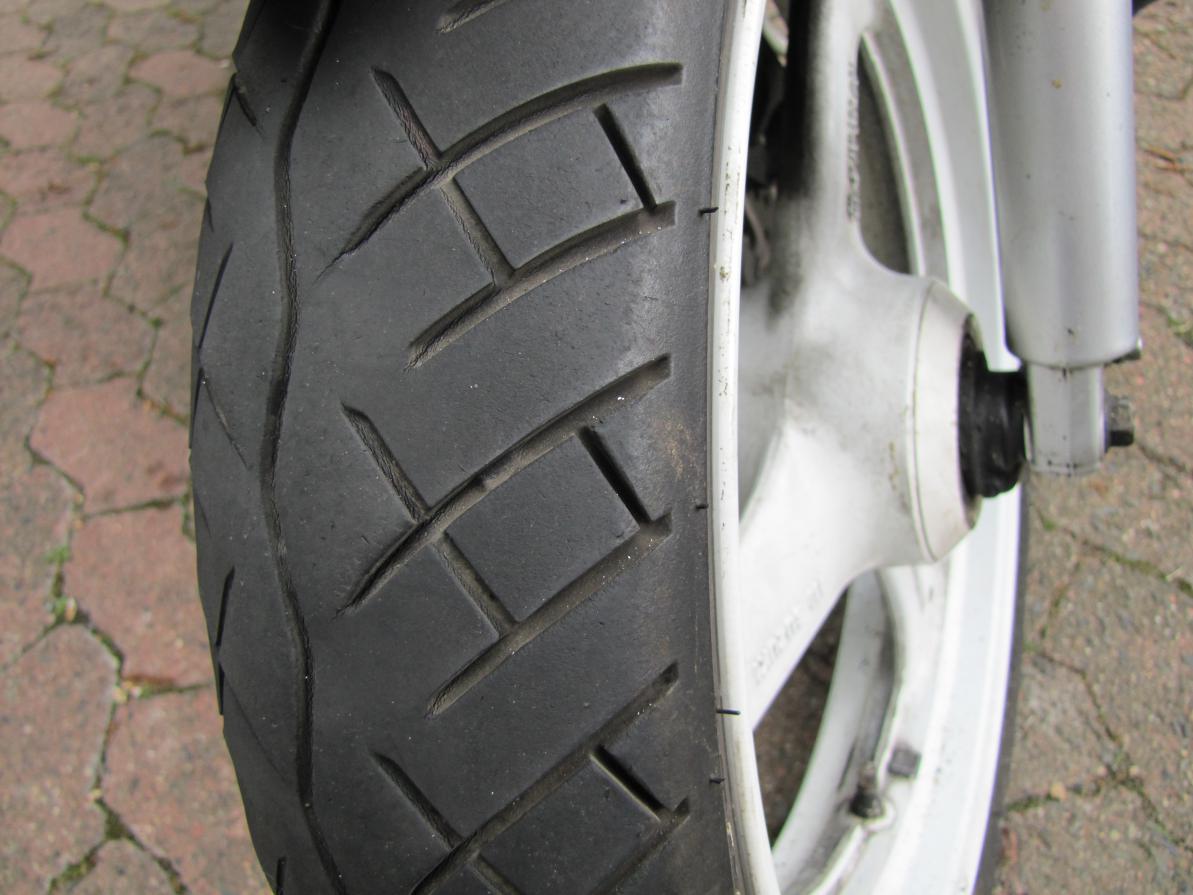 wollte diesen Monat nach der Behebung diverser Sturzschäden(Scheinwerfer, Blinker,..) aus dem letzten Herbst mein Mopped zum fälligen TÜV bringen, habe dann diese Risse in den Reifen entdeckt.