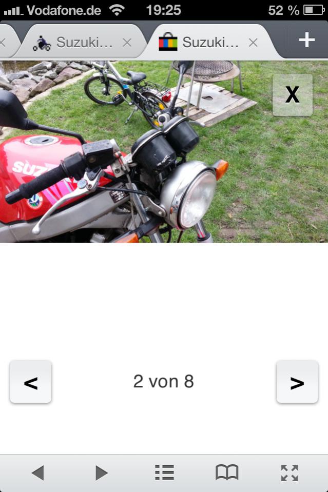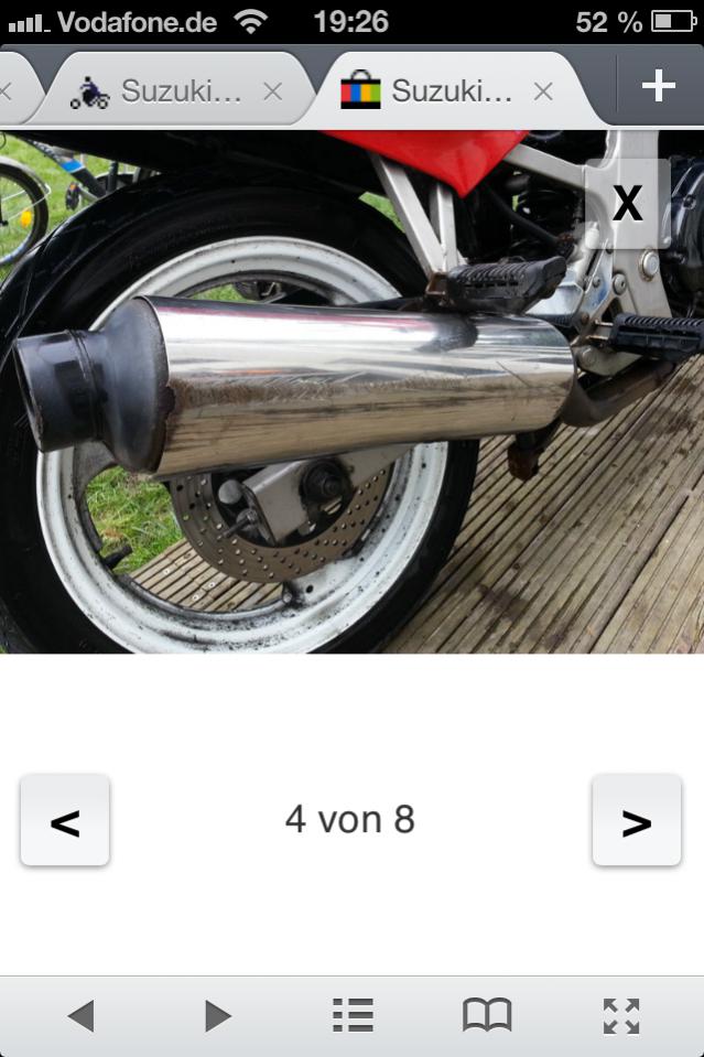 ich möchte mir eine Suzuki GS 500 anschaffen. Dabei bin ich auf diese Anzeige gestoßen. http://suchen.mobile.de/motorrad-ins...ml?origin=PARK Wie sind eure Meinungen zu dieser Anzeige? Und was sollte ich beachten bei einer Besichtigung und ist der Preis i.O ? mfg n0k |