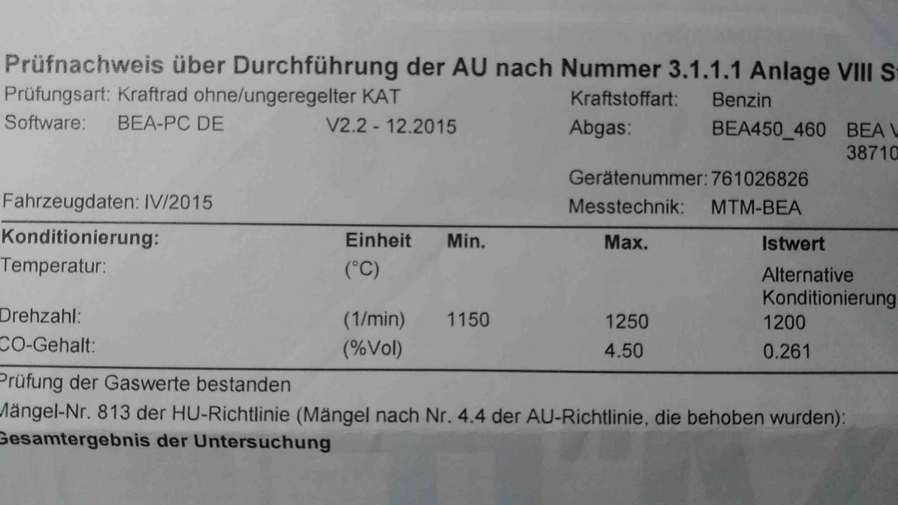 Ich habe aus einem anderen Forum einen Link zu einem Dokument bekommen, das viele Fragen zur Abgasuntersuchung bei Motorrädern klären soll. Ist für Werkstätten und den TÜV gedacht.