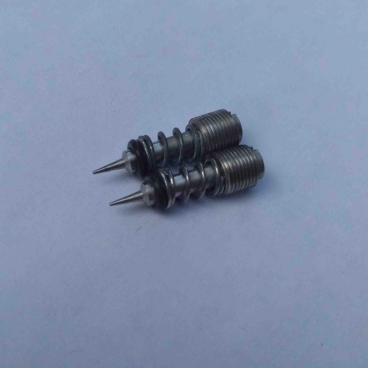 2)... und zuvor mal eine Leerlaufgemischschraube rausgemacht, um zu zu sehen, ob sie richtig eingebaut war. Sah aber korrekt aus und 4-teilig incl. Feder, Scheibe, Dichtring. Also wieder auf 1 7/8 reingedreht.