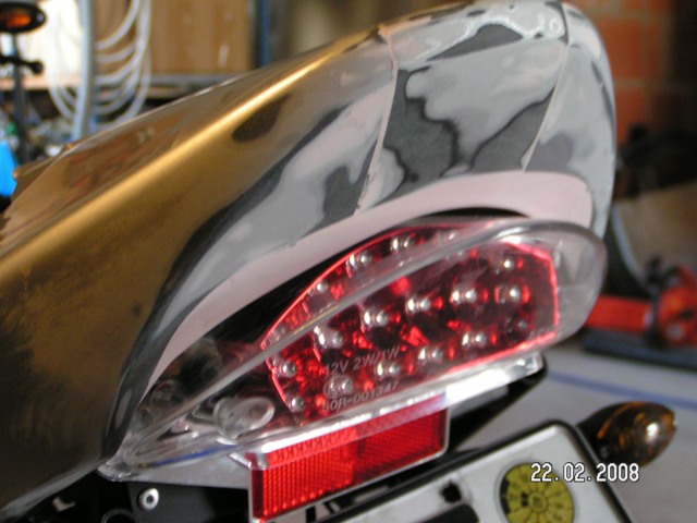 So hab heute mal nebenher kurz meine heckverkleidung angefangen und dem rücklicht angepasst... ich finds recht gut, das nächste mal werde ich dann noch die haltegrifflöcher zumachn...