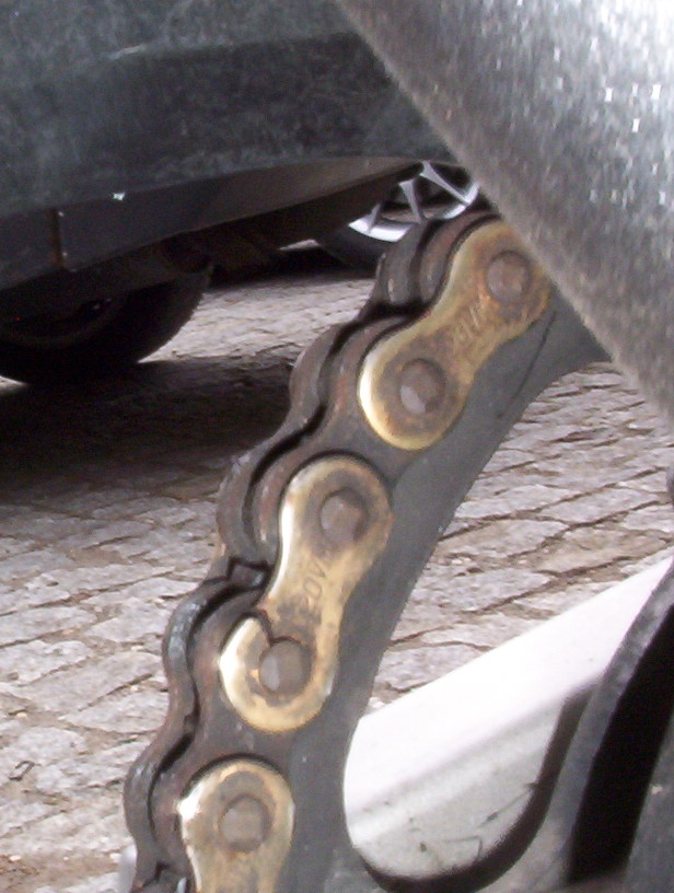 Rost, an der Kette, wenn man nicht wirklich ständig nachgesprüht hat. Noch schlechtere Kettenlebensdauer als mit Kettenfett. Letzten Endes war die Kette Schrott, weil ein Kettenglied angerissen war. Zum Glück hab ich das rechtzeitig gesehen, bevor mir die Kette um die Ohren geflogen ist.