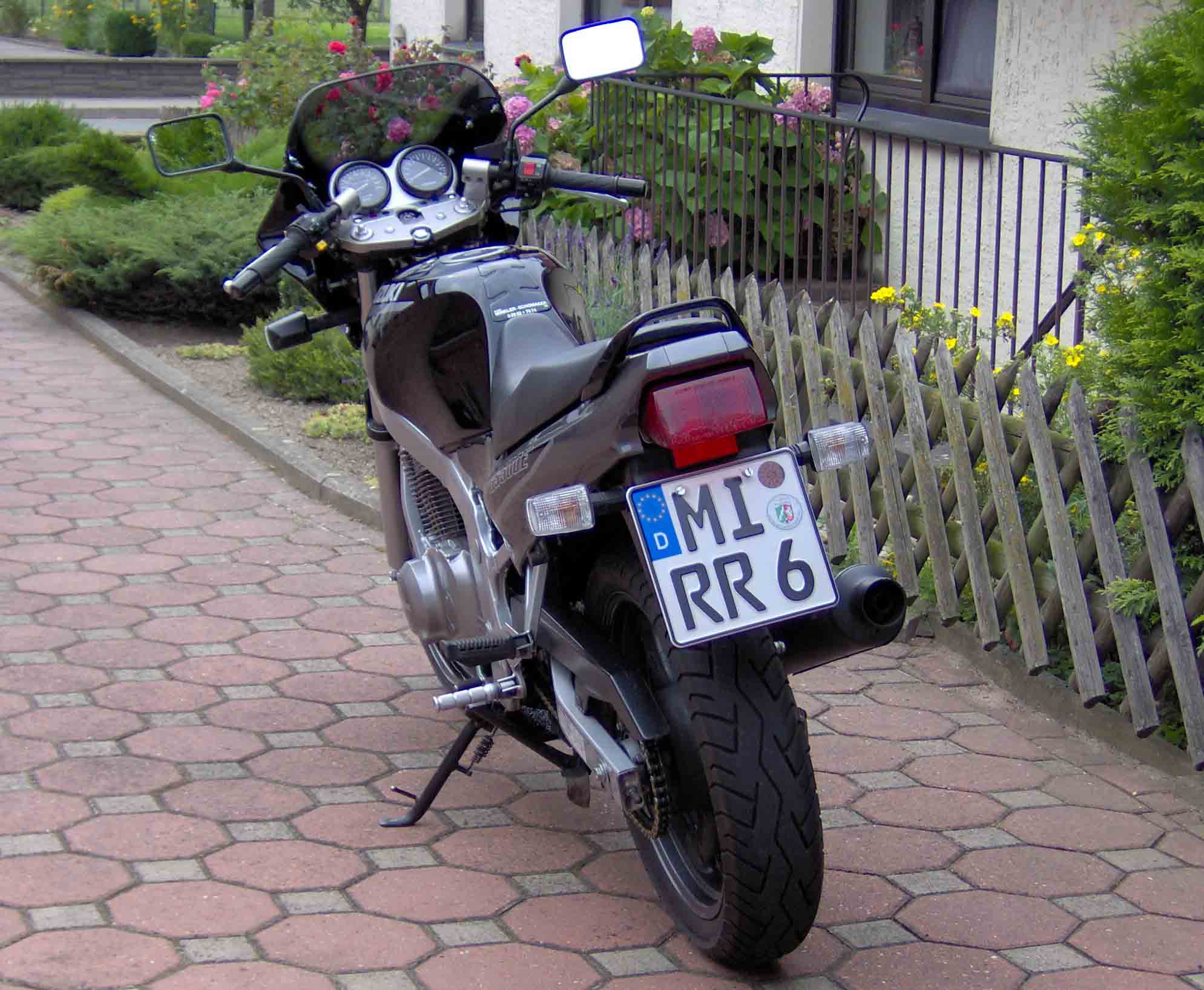 So, hier das Resultat mit Bugspoiler, Gabelprotektoren, Aufklebern und weißen Blinkern.