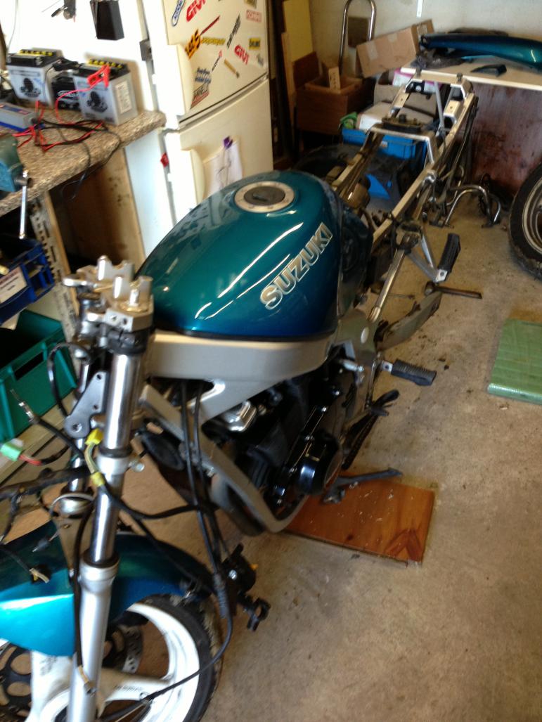 Jetzt bin ich grad mit meinem Vater am Schrauben und Flott machen von der GS dran..