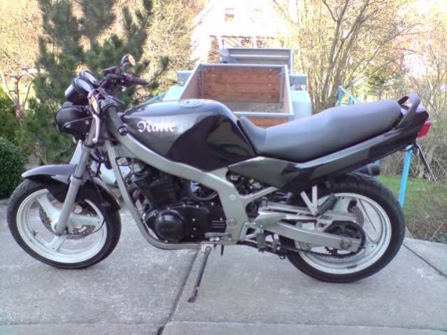 ![]() - is ne bj94 - wurde von mir in schwarz matt lackiert, samt felgen die anschließend beklebt wurden - shinyo spiegel - superbike lenker - jama sportauspuff, mit delle - matt schwarze doppelscheinwerfer - dunkle miniblinker - rote lenkerenden - öltempanzeige - mbd bugspoiler - bordsteckdose unterm sitz - suzuki gs 500 aufkleber auf dem bug - blaue tachobeleuchtung