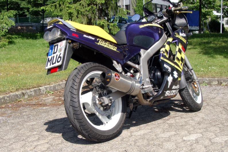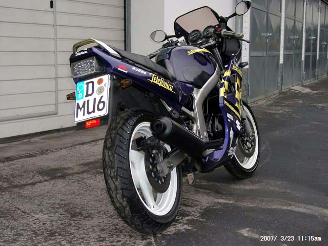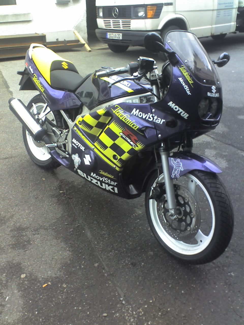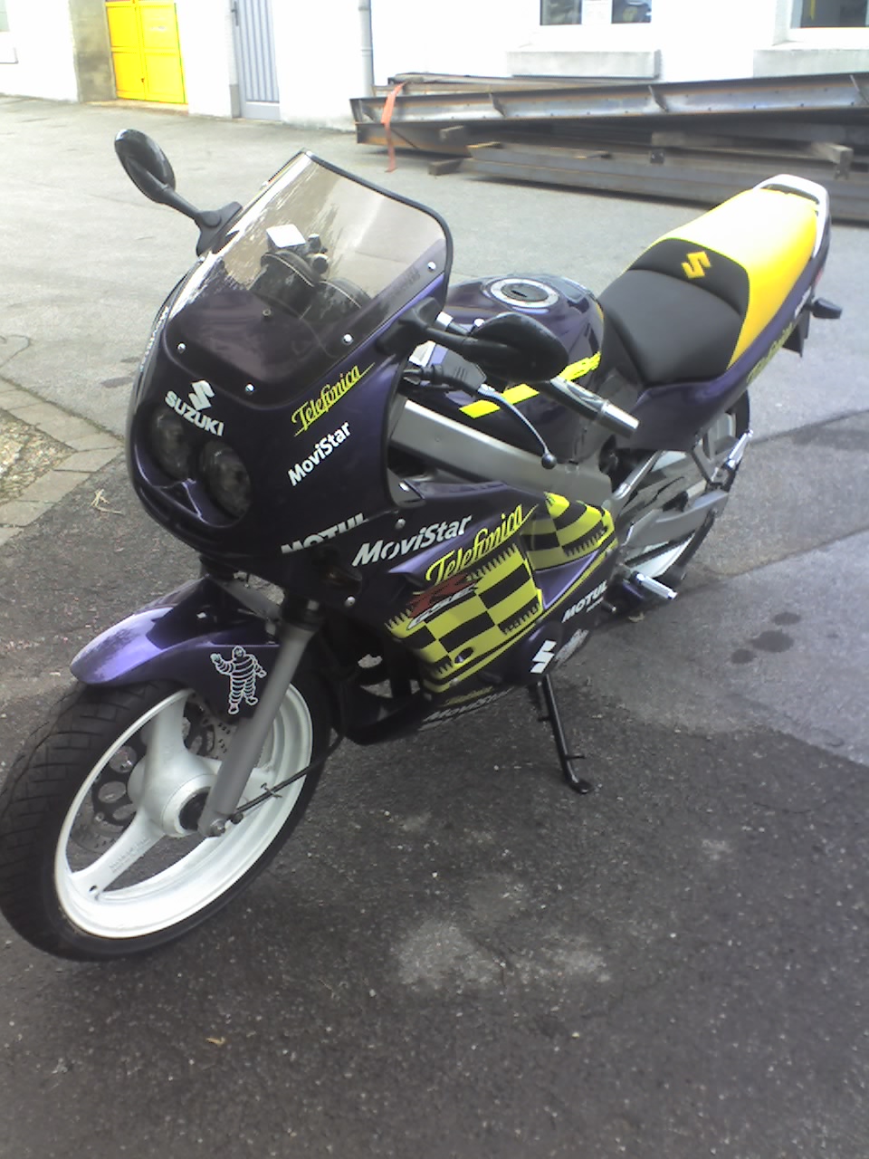 Eine der schönsten Suzukis war für mich die RGV 500 im Telefonica Design. Hab daher überlegt, ein Design in Anlehnung an die Suzuki RGV 500 anzubringen.