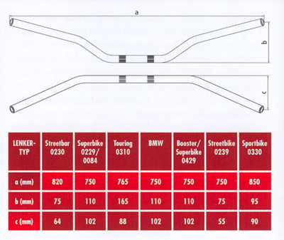 Standard Empfehlung Superbike/Touring Lenker