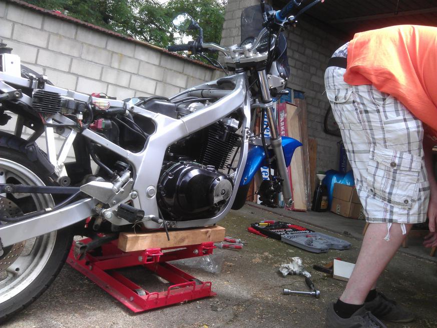 Am Samstag habe ich zusammen mit einem Kumpel, meinem Onkel, einem Freund und meiner Freundin mein Motorrad dann auseinander genommen.