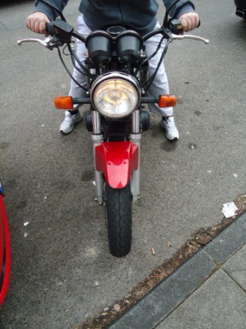ja ich hab mich verewigt, der Tank war verbeult und die Maschine war rot, ich habe alles in schwarz nun. Den Fender hab ich nur noch net hingemacht |