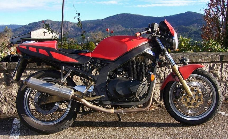 Fahrzeug Nr 488 Ez 4/89 110 000 km 1. Motor 1. Kupplung 1. Besitzer 9. Lackierung Eigenbau Höcker Eigenbau Lampenmaske Eigenbau Kettenschutz Eigenbau Rückspiegel Eigenbau Sturzbügel Eigenbau weiße Tachoblätter Gabelfedern Wirth Federbein Wilbers Stahlflex Spiegler 150er Hinterreifen Auspuffanlage Jama Luftfilter K&N Duplex Rücklicht Kawasaki Akront Drahtspeichenfelgen |