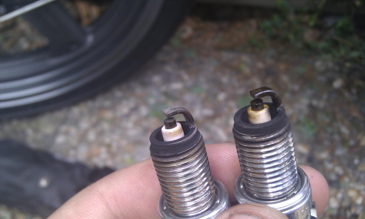 Also folgendes Motorrad ohne Choke an kommt sofort und geht auch direkt auf die Leerlaufdrehzahl. Hand an beide Krümmer, am rechten Krümmer konnt ich die Hand 10 Sekunden lassen bevor ich sie wegziehen musste. Am Linken allerdings 50 Sekunden bis es mir zu Heiß wurde. Der Rechte Krümmer ist auch viel angelaufener als der Linke. Die Linke Zündkerze ist Braun und Nass die Rechte trocken und Rehbraun. Zündkerzen tauschen hat keinen Erfolg gebracht der Linke Krümmer wird trotzdem viel langsamer Warm. Wenn ich den Zündstecker abziehe ist es aber trotzdem noch ein großer Unterschied also läuft der Linke Zylinder nur Sporradisch mit. Wenn es ein Problem mit der Zündung sein sollte wieso sollte der Zylinder dann nach dem Teillastbereich ab ca 4000 dann wieder Ordentlich laufen. Außerdem meine ich das wenn ich 10 15 Minuten gefahren bin das viel besser ist wenn die Maschine warm ist. Bin aber bis jetzt zu wenig gefahren ohne wirklich drauf zuachten wenn man gerade den Führerschein hat und erst 4 mal gefahren ist achtet man noch auf andere Sachen Mir fehlt leider noch das Technische Verständniss um da eine Diagnose abzugeben aber ins innenleben des Vergasers habe ich noch nicht geguckt. Könnte eventuell der Linke Vergaser verschmutzt sein und dadurch im Teillastbereich überfetten?? Hab mal ein paar Bilder und ein Video gemacht http://www.youtube.com/watch?v=iQGm4...ature=youtu.be Edit: Das Video ist nur dafür da um mal das Laufgeräusch im Kalten zustand ohne Choke zu zeigen |