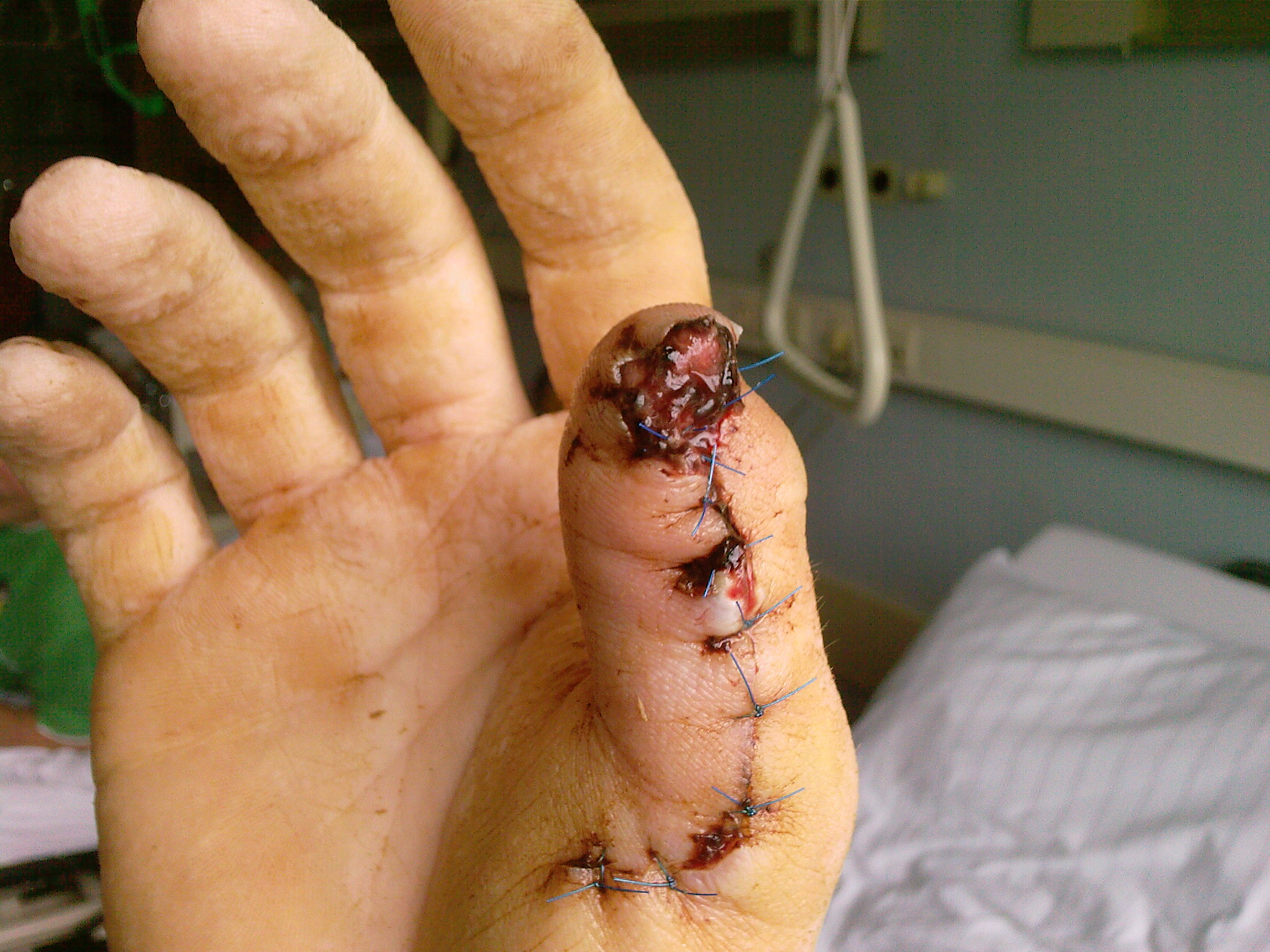 Das war alles andere als klein. Hast du dir die Bilder genau angeguckt? Das Stück bis zum Nagelbett war komplett weg, Knochen gesplittert etc. Da wurde der Daumen an der Seite aufgeschnitten und alles (Gefäße, Nerven) nach vorne gezogen und angenäht.