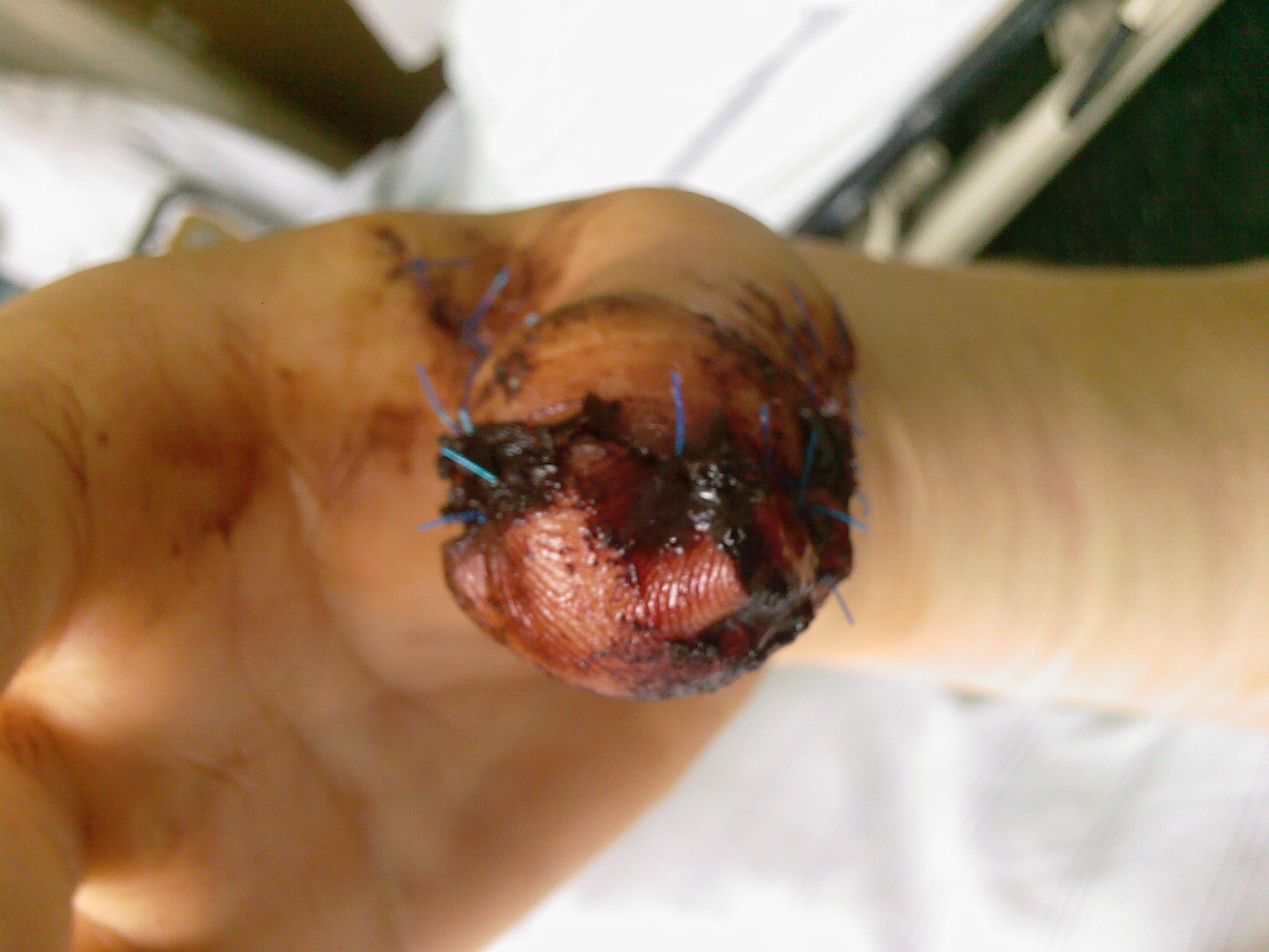 das selbe ist mir dienstag vor 1 1/2 wochen auch passiert, nur dass mein daumen an den seiten verschont blieb.