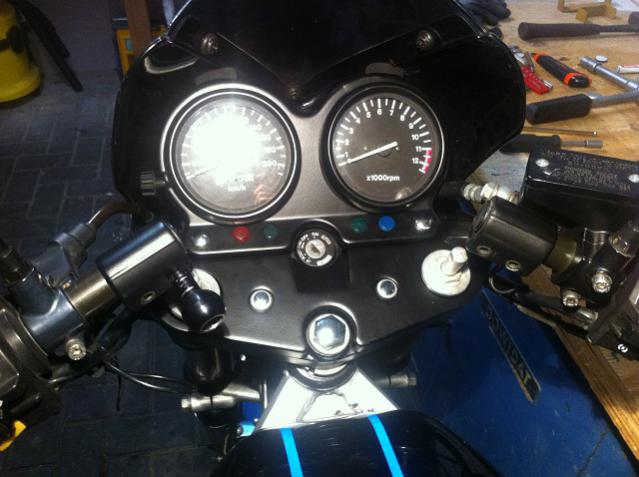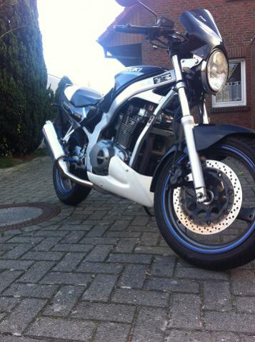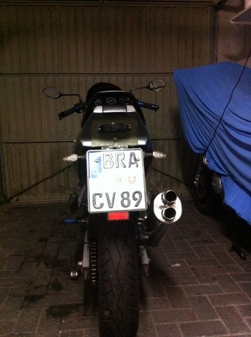 - Mini LED Blinker - Andere Spiegel - Sport Fußrasten (Blau eloxiert) - Rizoma Griffe (Blau eloxiert) - Rizoma Lenkerenden ( schwarz ) - Rahmen stopfen Blau - Ventilkappen (Blau) - Blaue Felgenbänder - Blaue Streifen übern Tank - Blaue Tachobeleuchtung - Zwischenstück vom Fender Blau lackiert - Hupe Blau lackiert - Ölschraube Blau lackiert - Kurzer Kennzeichenhalter - Gabelbrücke, Stummelhalter, Tachohalter, Soziusgriff, Verkleidungszwischenstück schwarz lackiert - Progressive Gabelfedern Wilbers mit 15er Öl - Wilbers Federbein - Puig Scheibe mit Blauem Streifen - kupplungshebel und Bremshebel in Schwarz - Bremsankerstrebe Schwarz lackiert - Bremssattel kappe Blau Was noch gemacht werden soll: - Tank,Fender und Verkleidungsteile in RAL 7012 (matt Grau) lackieren - Neue Aufkleber - Blaue Streifen über Tank und Zwischenstück hinten aber nicht mittig! - Bugspoiler und Sozuisabdeckung verbauen und in RAL 7012 lackieren - Remus Viper anbauen - Edelstahl Kettenschutz - Neuen Sitzbankbezug mit blauen Nähten - Klarglas Scheinwerfer Geändert von Vossa (20.10.2013 um 22:40:07 Uhr) |