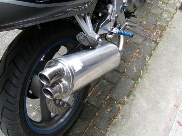 Hier ![]() Die hinteren Rasten müssten noch neu, wie die Fahrerrasten, und die Steigung des Auspuff sollte parallel zum Rahmen verlaufen, und noch blaue Gabelprotektoren dran. Das sind nur Details, fiel mir aber ins Auge - wie gesagt, nur meine Meinung. |