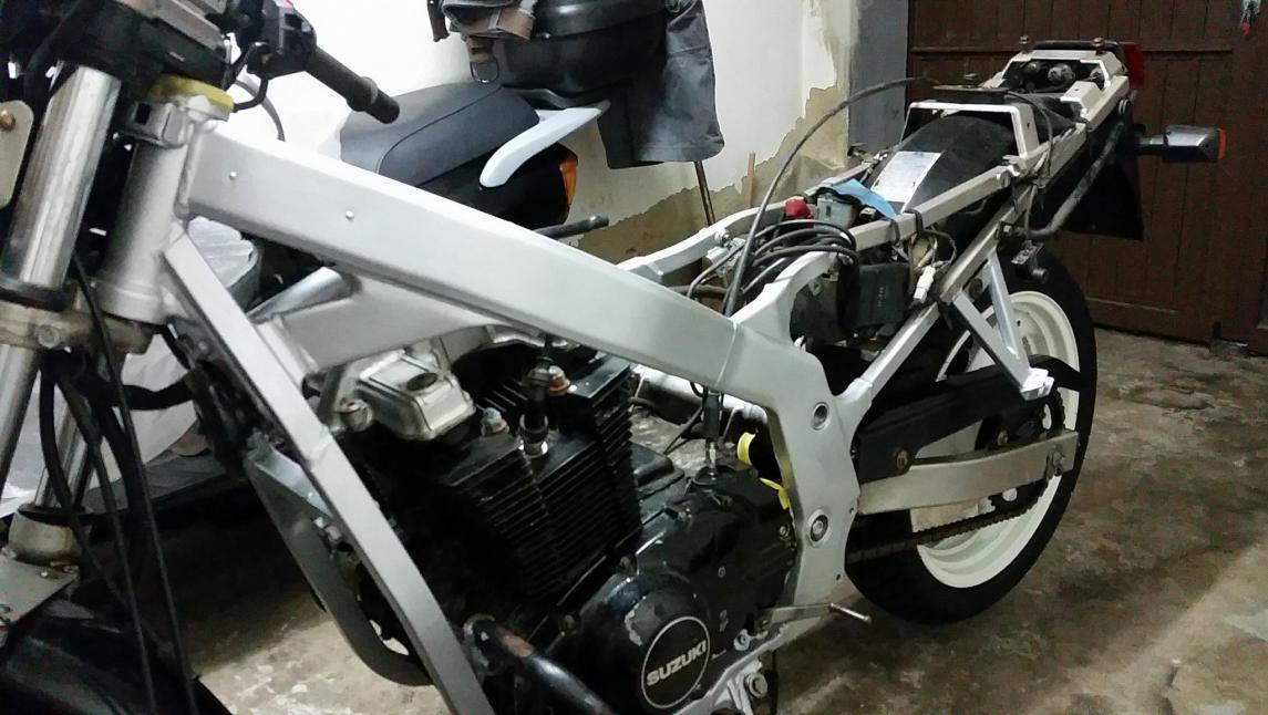 Inzwischen habe ich den Rahmen in Silber gelackt, den Tank innen gereinigt(+ Benzinfilter), neue Benzinleitungen verlegt (+Benzinhahn Reinigung), das Ventilspiel geprüft, Vergaser wieder eingebaut, Frischen Luftfilter verbaut und einen Öl wechsel gemacht (+Ölfilter).