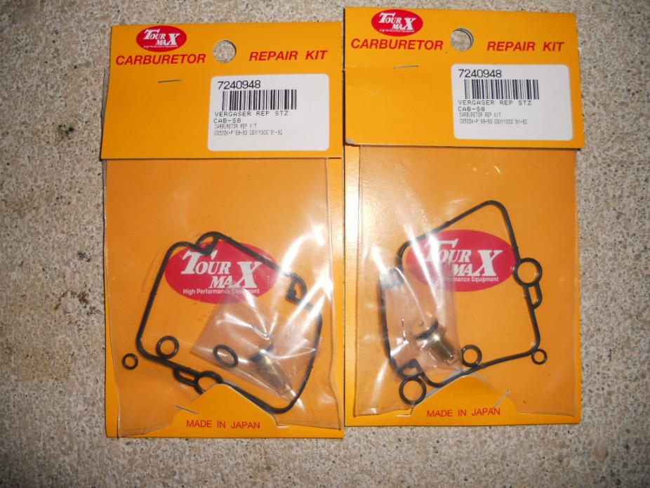 wir haben für unsere 95er GM51B auch 2 Vergaser-Reparatur-Kits aus dem Zubehör gekauft, allerdings nicht von Louis, sondern von "Tour Max" (siehe Foto im Anhang). Hat da jemand Erfahrung damit, taugen die Schwimmernadeln und Dichtungen aus dem Zubehör was? Was mich verwirrt hat, war die angegebene Modellbezeichnung und Baujahr: für GS500K-P 89-93, obwohl ich für die 95er bestellt habe. Da wurde ja aber weiter oben im Thread schon erwähnt, dass die Rep-Sätze für die Vergaser von 89-01 identisch sind, dann sollte das wohl passen... Trotzdem komisch, warum schreiben die dann nicht gleich drauf, 89-01 anstatt 89-93. Im Satz sind jeweils enthalten: Schwimmernadel und deren Sitz/Halterung, Schwimmerkammerdichtung und 3 O-Ringe verschiedener Größen. Fehlt da noch irgendwas Relevantes, was man auch wechseln sollte? Ich dachte, die Gemischnadelschraube wäre bei solchen Sets als auch dabei (war zumindest bei den Sets für die GPZ500 so). Grund für die Aktion war/ist ein undichter Vergaser, bei dem die undichte Stelle nicht genau lokalisiert werden konnte und deshalb mal alles getauscht wird, was dort an Dichtungen vorhanden ist. Ausser dem genannten Material der Rep-Sätze hab ich noch die 2 Dichtungen des T-Stücks vom Suzihändler geholt. Wenn jemandem noch was einfällt, was sonst noch im gleichen Zug gewechselt werden sollte bzw. im Rep-Satz nicht enthalten ist, freu ich mich natürlich über eure Tipps. Grüßle Sabse
