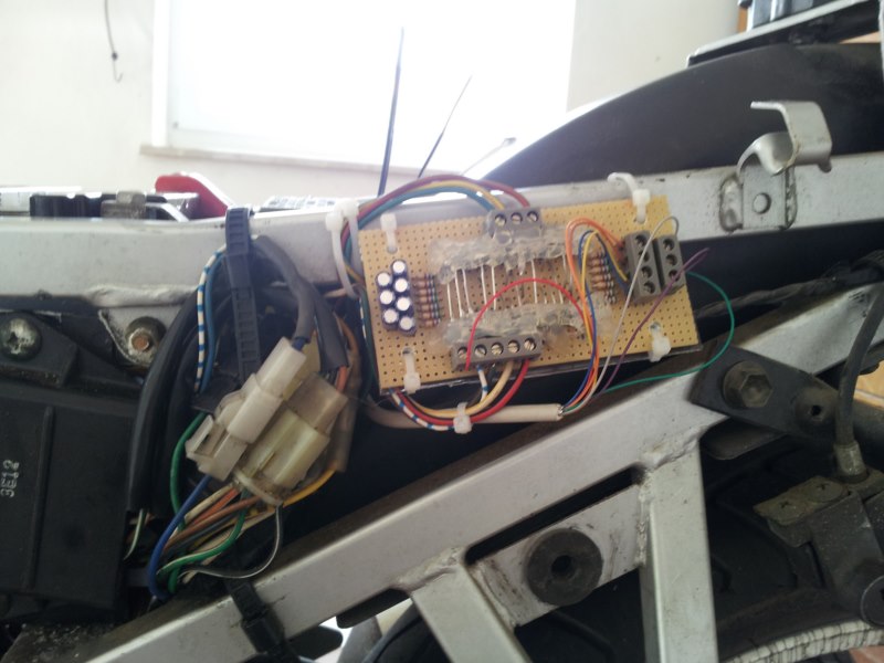 Die Platine hab ich simpel aufgebaut, nur mit Dioden Widerständen Kondensatoren.
